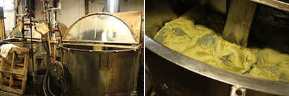 ムートンは酸を使った染色方法が主流で、革がついているため温度は低めで染色をします。