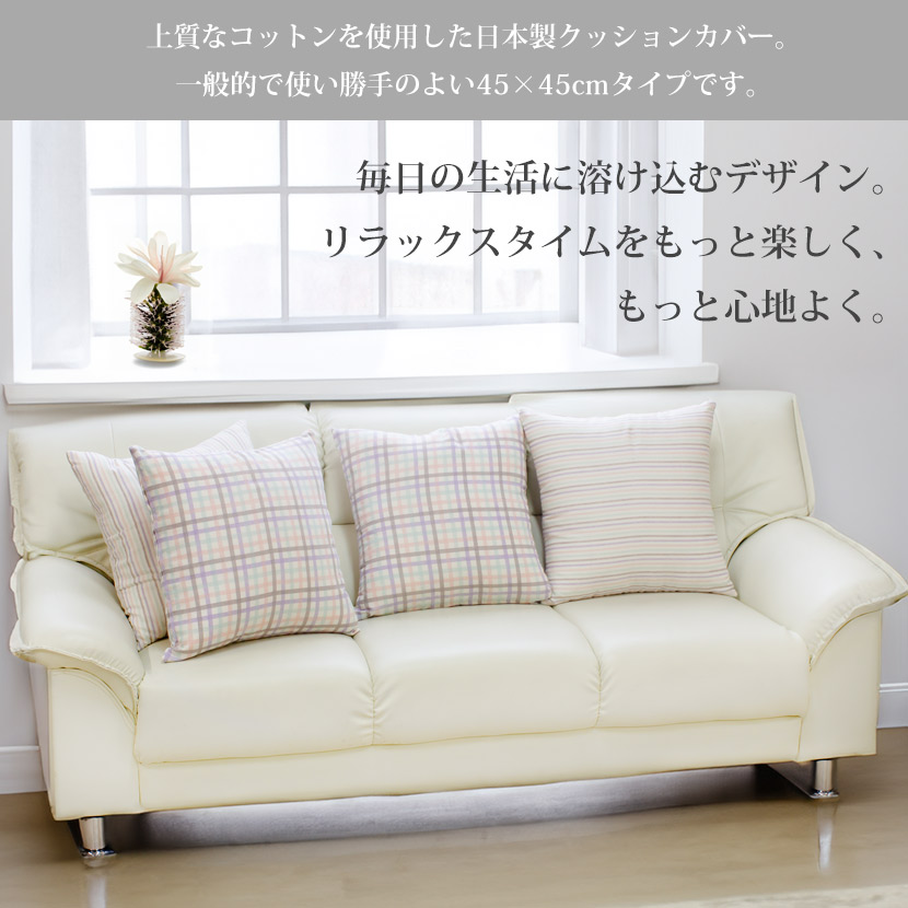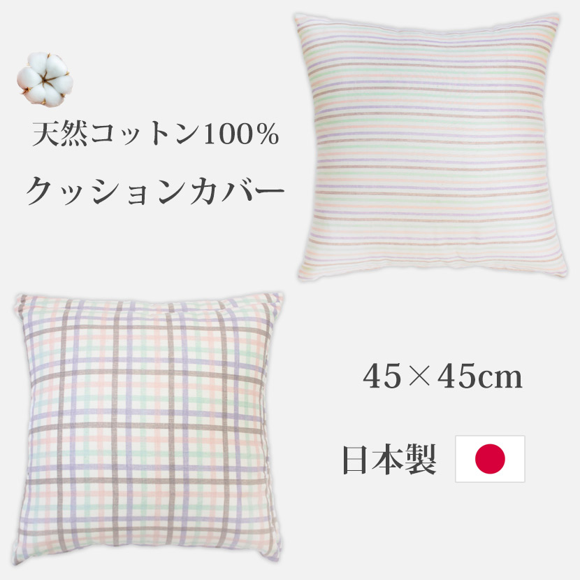 45×45cmサイズの日本製コットンクッションカバー。