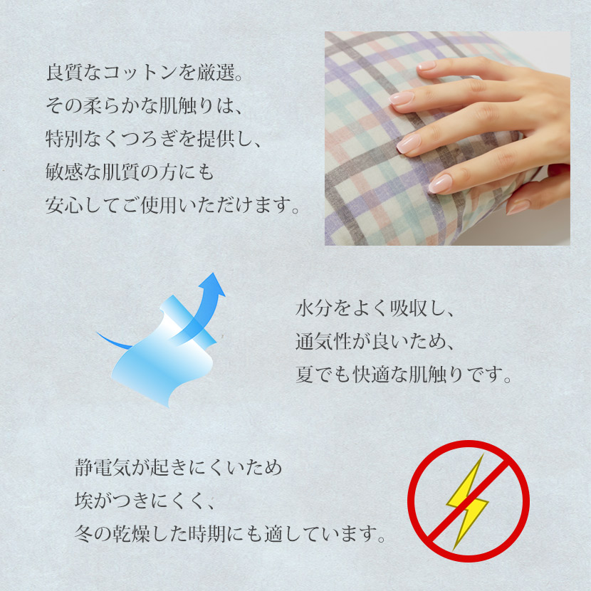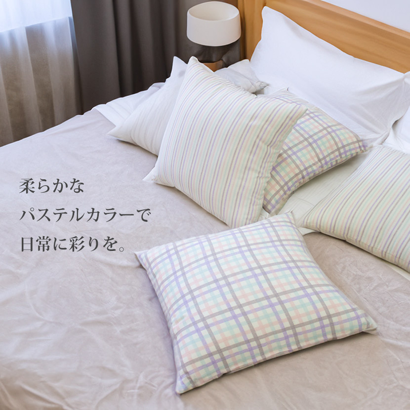柔らかな色合いとシンプルなデザインが、どんなインテリアにも馴染みやすく、お部屋を明るく彩ります。高品質の綿100%素材を使用しており、肌触りが良く、オールシーズン快適にご使用いただけます。